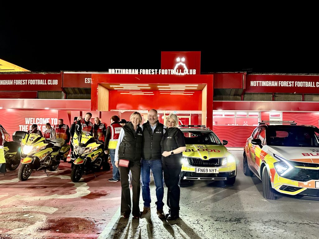 Training was delivered collaboratively by Les Norman (Nottinghamshire Blood Bikes), Sarah Lewsey (ATTFE College), and Julie Taylor MBE (CPTED-UK Ltd) at the Nottingham Forest Football Club.